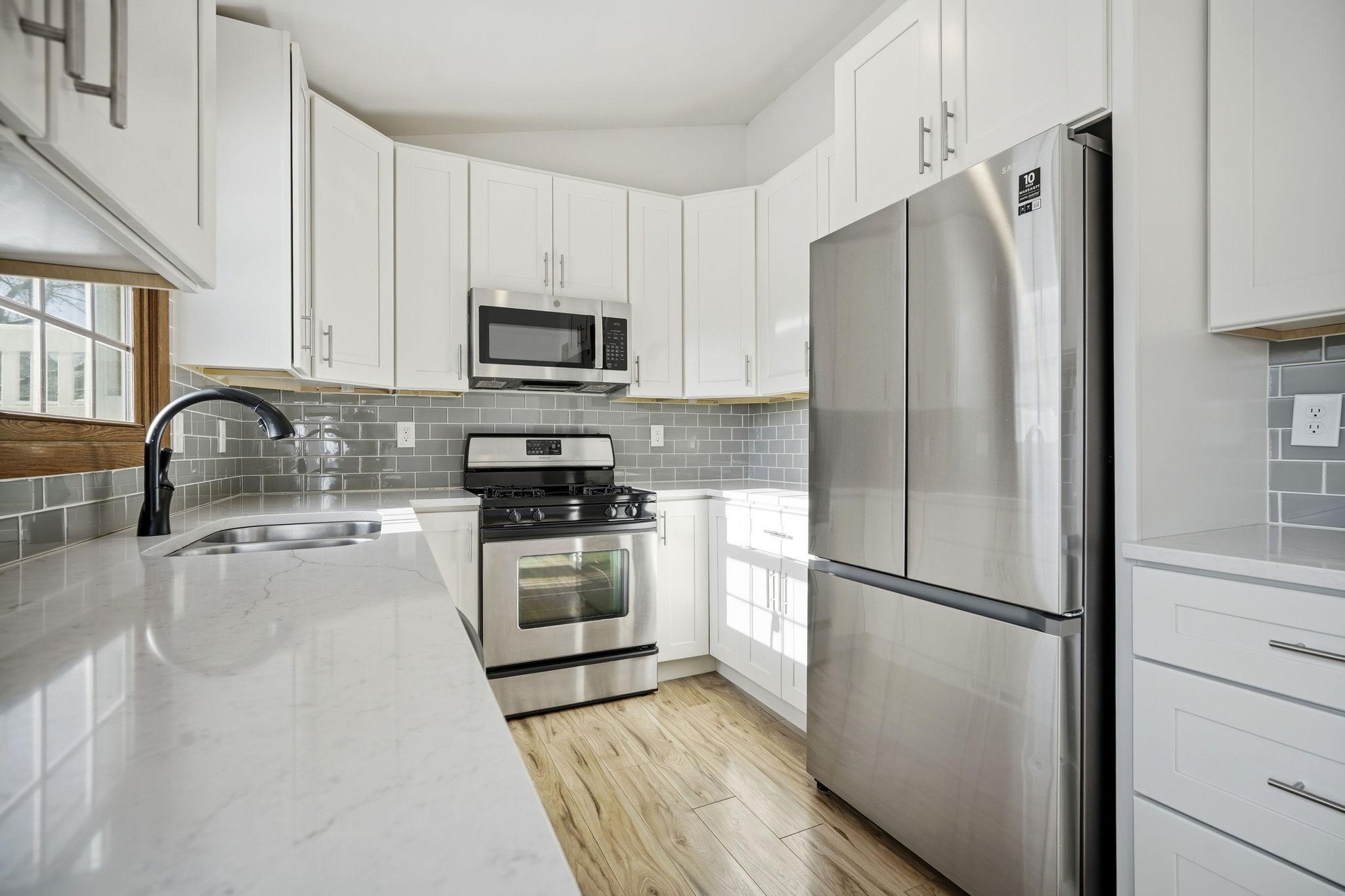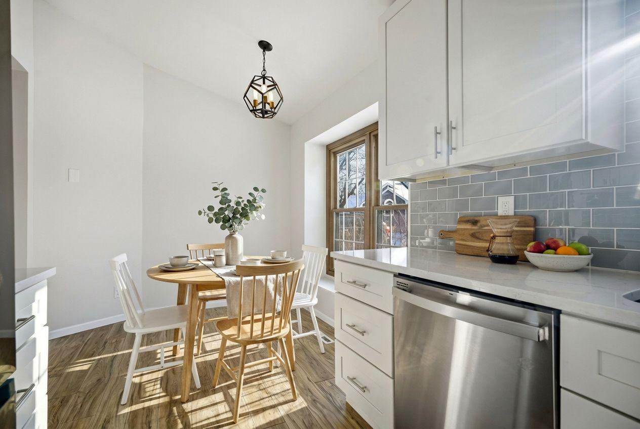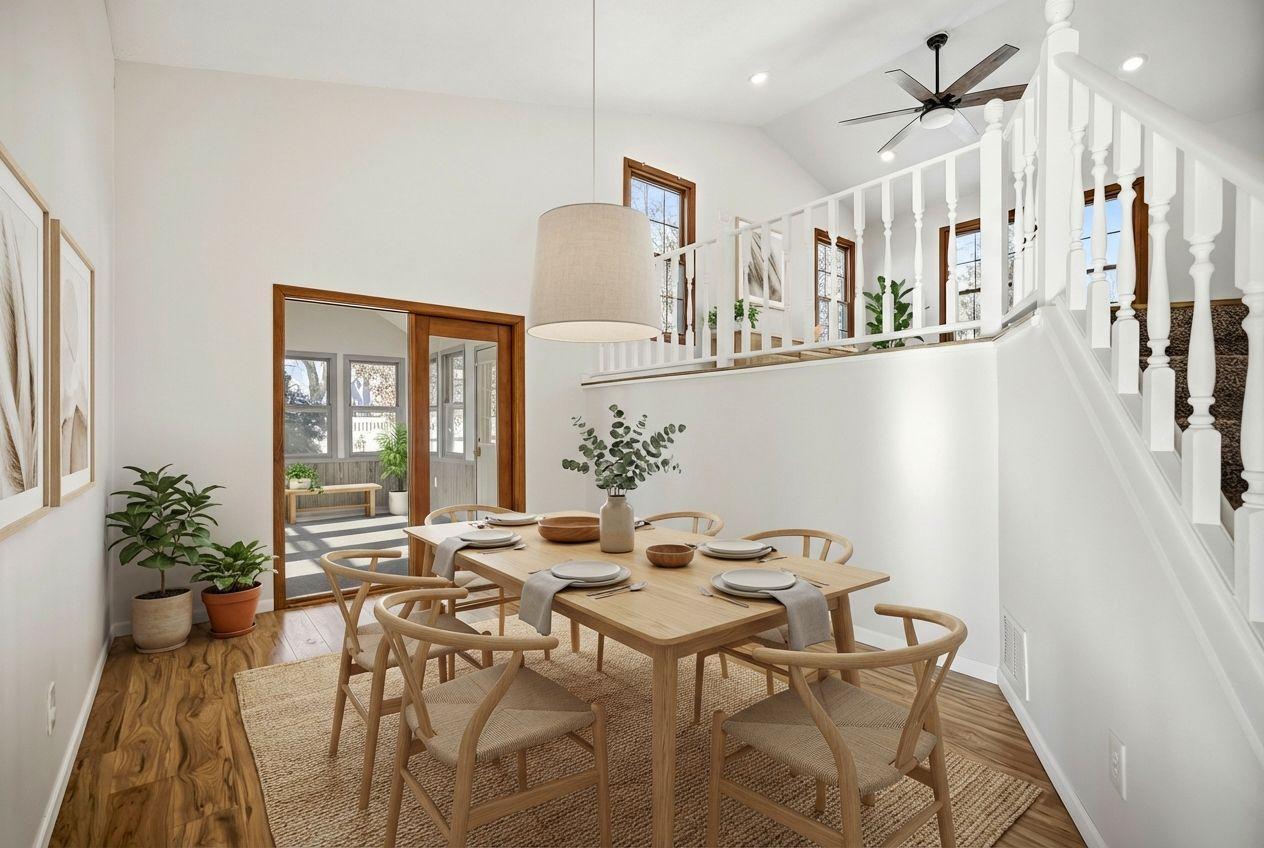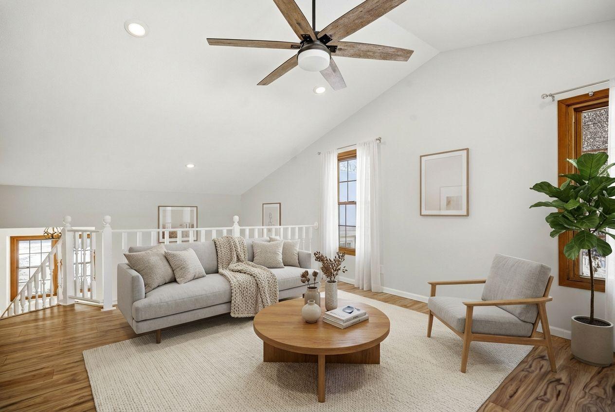 Located on a quiet street in West Bloomington, this well updated home offers modern finishes and comfortable living spaces throughout. The kitchen features white custom soft-close cabinetry, quartz countertops, stainless steel appliances, a gas range, durable plank flooring, and a glass tile backsplash. Both bathrooms are updated and include white vanities and quartz countertops, with the upper level bath offering a tiled shower, dual sinks, and a convenient laundry area. A second washer and dryer are located in the lower level. The fully fenced yard includes mature trees, perennial gardens, a deck, and a white picket fence, creating a private and welcoming outdoor space for pets, play, or entertaining. A vaulted three season sunroom provides a bright and versatile retreat. Conveniently located near parks, shopping, Highway 169, and just minutes from the airport. Don't miss this move-in ready home in a great location!
