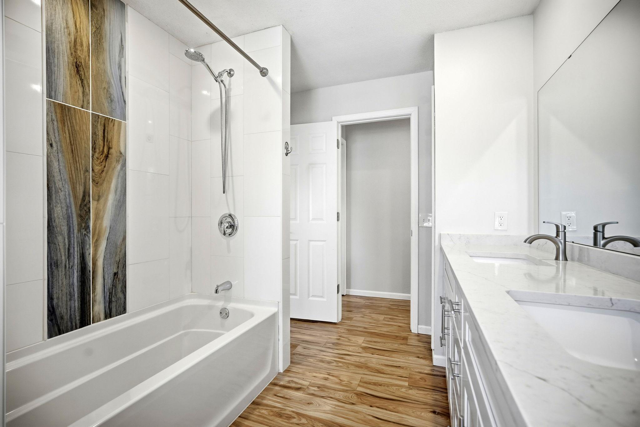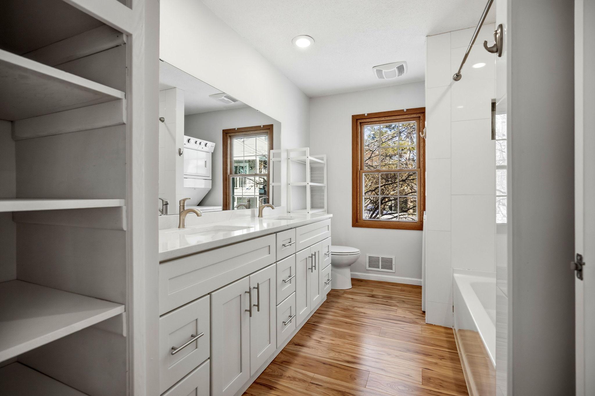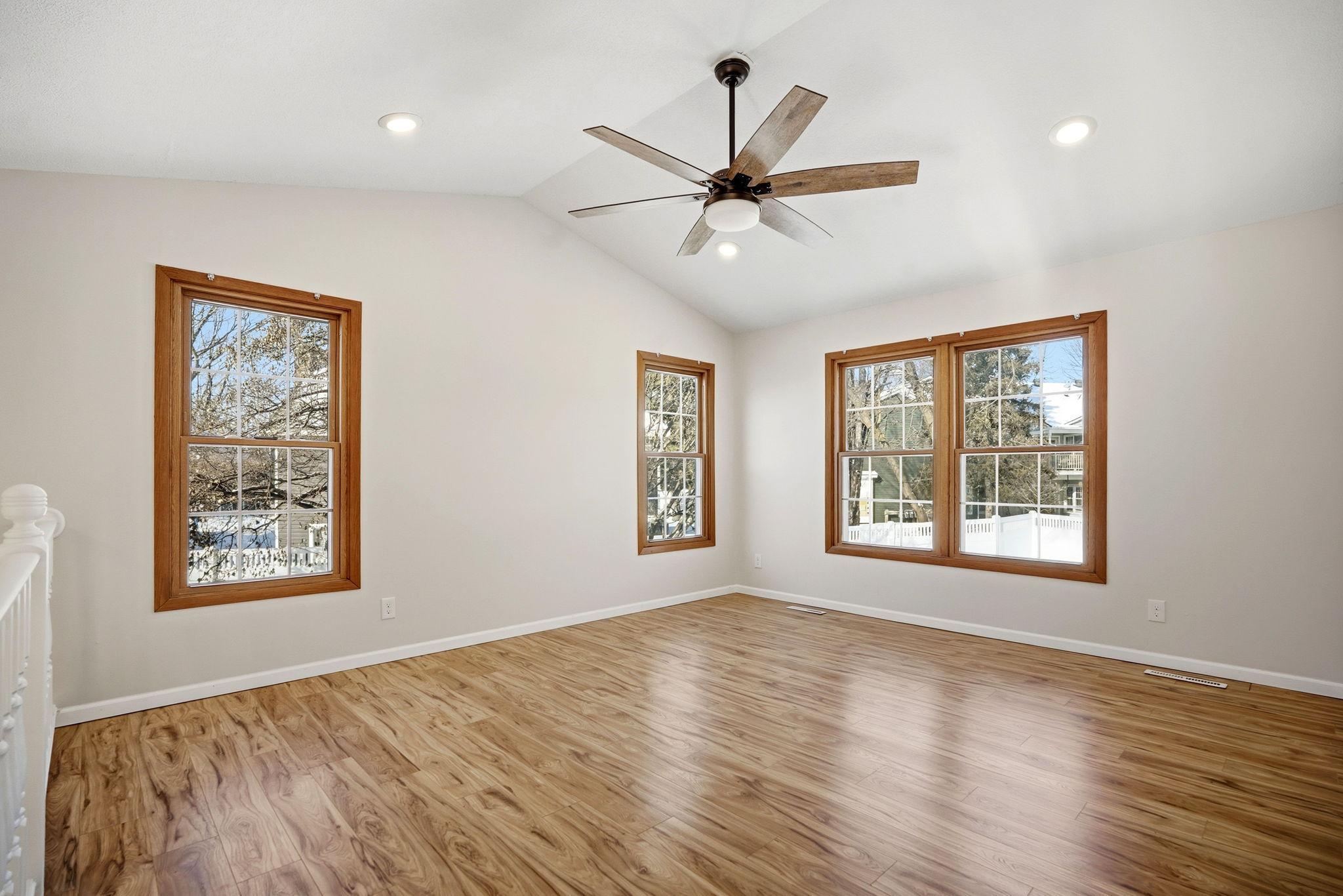Located on a quiet street in West Bloomington, this well updated home offers modern finishes and comfortable living spaces throughout. The kitchen features white custom soft-close cabinetry, quartz countertops, stainless steel appliances, a gas range, durable plank flooring, and a glass tile backsplash. Both bathrooms are updated and include white vanities and quartz countertops, with the upper level bath offering a tiled shower, dual sinks, and a convenient laundry area. A second washer and dryer are located in the lower level. The fully fenced yard includes mature trees, perennial gardens, a deck, and a white picket fence, creating a private and welcoming outdoor space for pets, play, or entertaining. A vaulted three season sunroom provides a bright and versatile retreat. Conveniently located near parks, shopping, Highway 169, and just minutes from the airport. Don't miss this move-in ready home in a great location!