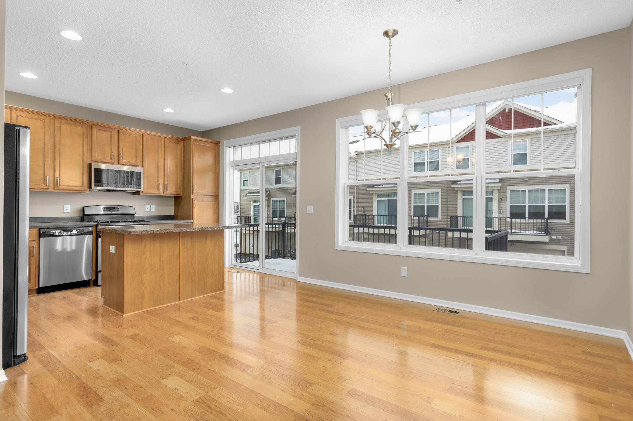 Impressive three-level townhome in one of Maple Grove’s most sought-after locations, offering the perfect blend of walkability, convenience, and privacy. Enjoy being just steps from Arbor Lakes, the community center, library, and popular local restaurants, all while tucked into a quiet neighborhood setting. The main level welcomes you with a warm and inviting living room featuring a gas-burning fireplace, a convenient half bath, coat closet, and a cozy family room that flows seamlessly into the dining area—ideal for everyday living and entertaining. The kitchen is thoughtfully designed with maple cabinetry, stainless steel appliances, a center island, and easy access to the maintenance-free deck. Upstairs, you’ll find three bedrooms and two full bathrooms, including a spacious primary suite with vaulted ceilings, a walk-in closet, and a private bath complete with dual sinks, a separate soaking tub and shower, and a linen closet. The lower level offers laundry and a large unfinished space with endless potential—perfect for a workout room, future bedrooms, or additional living space, with rough-in already in place for a fourth bathroom. A fantastic opportunity to enjoy low-maintenance living in a prime Maple Grove location close to everything you love.