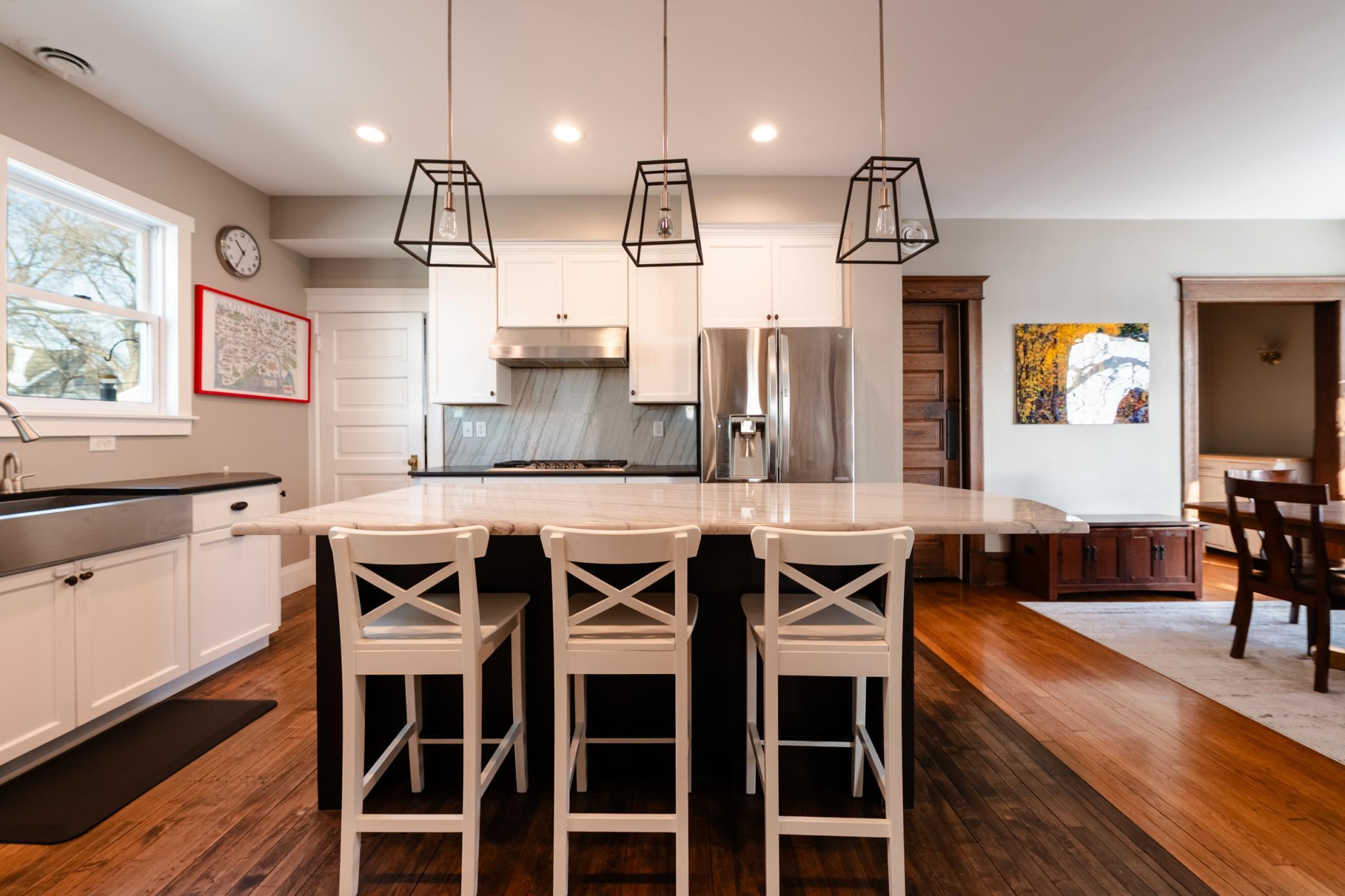 Just Listed in Macalester-Groveland! Modern convenience meets neighborhood charm in this classic two-story home seamlessly blends timeless character with modern updates. The remodeled chef's kitchen features stainless steel appliances, ample storage, a breakfast bar, and dedicated dining area. With a rare fifth bedroom in the finished attic, the upper levels offer exceptional flexibility for growing families, home offices, or guest spaces. Recent upgrades including solar panels and a new boiler ensure energy efficiency and peace of mind. Situated on a large corner lot directly across from neighborhood parks and just steps from the vibrant shops and restaurants of Grand Avenue, this home offers the best of St. Paul living. The spacious basement awaits your vision for additional finished square footage, and the fully fenced yard provides a private outdoor retreat.