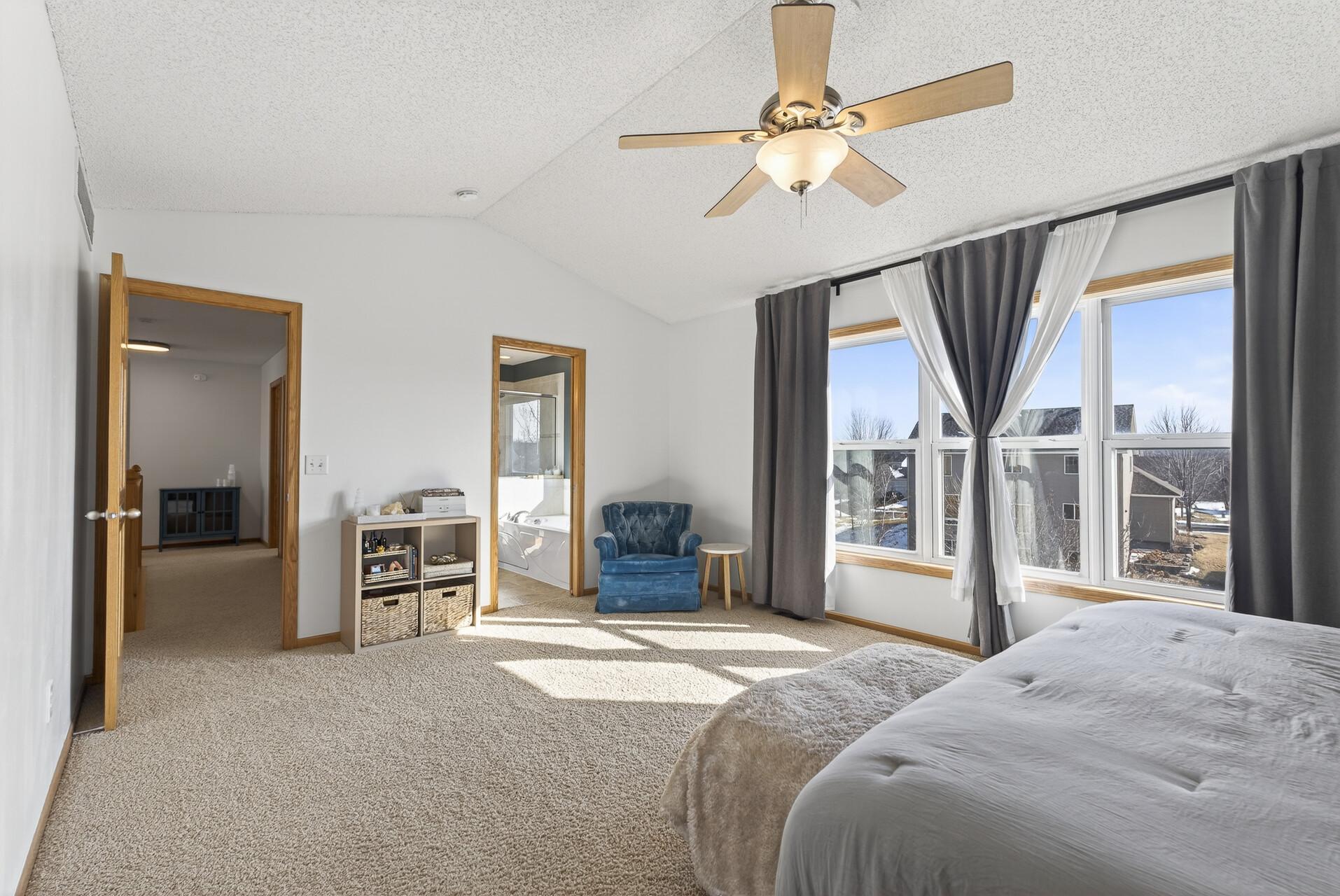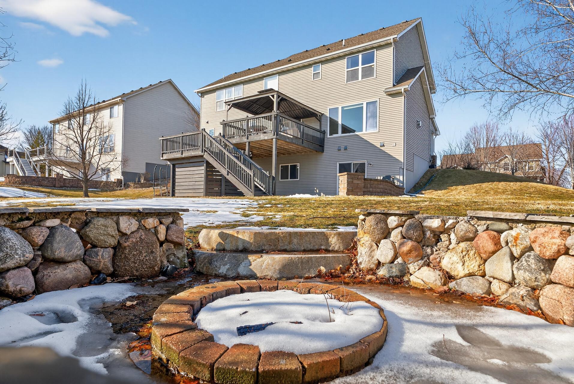 This immaculate home offers an open floor plan with flex space! Large family room opens to the kitchen and a front room that could be either a dining room or office. The kitchen is the heart of the home complete with granite counter tops, desirable center island and tons of work/storage space and of course top of the line stainless appliances. 4 generous sized bedrooms on the upper level with the owners suite sporting a HUGE walk-in closet and luxury bath set up. Walkout lower level is ready to be finished, 5th bedroom is completed and finishing the main entertaining area, bathroom and den would add an additional 800+ sf. Summer is coming – time to enjoy the decks, gazebo, fire pit, irrigation system and plenty of back yard space. Two neighborhood parks and direct access to trails leading to Carver Park. Hunters Crest is known for its miles of scenic trails, mature trees and expansive park space. Come join the fun.
